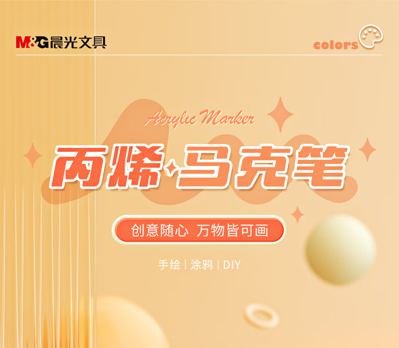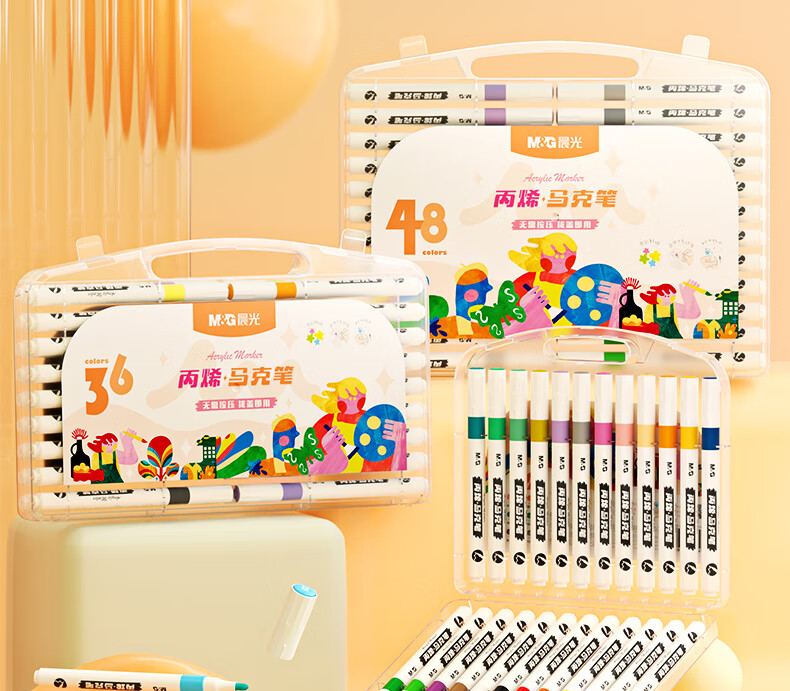 晨光(M&G)文具48色防水速干大容量丙烯马克笔单头耐磨 美术学生儿童手绘咕卡画笔涂鸦DIY水性丙烯PP盒装考试