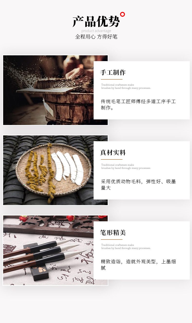 马利(Marie's)白云毛笔大中小3支装 白云羊毫毛笔大中小楷 书法山水工笔国画笔初学者学生练字毛笔G1333