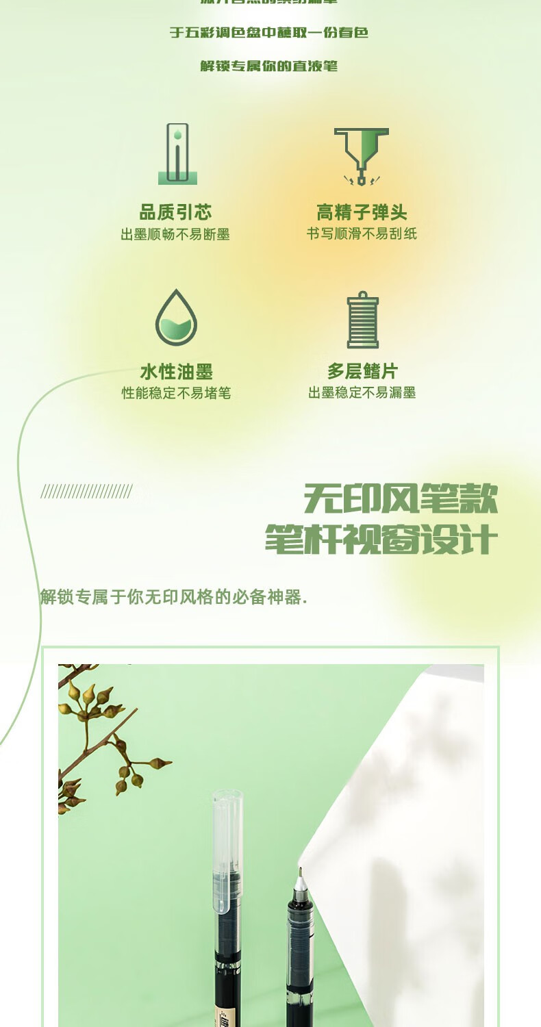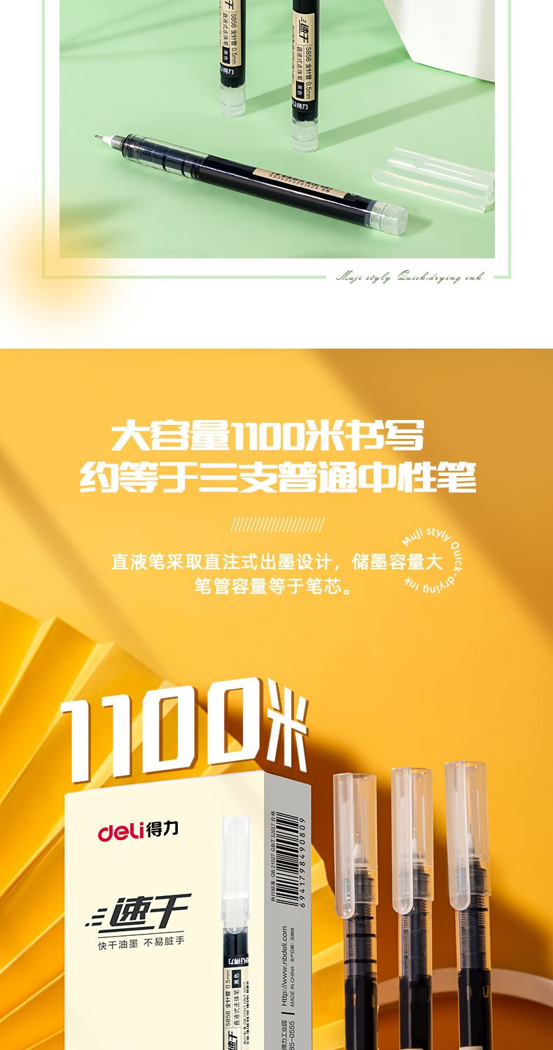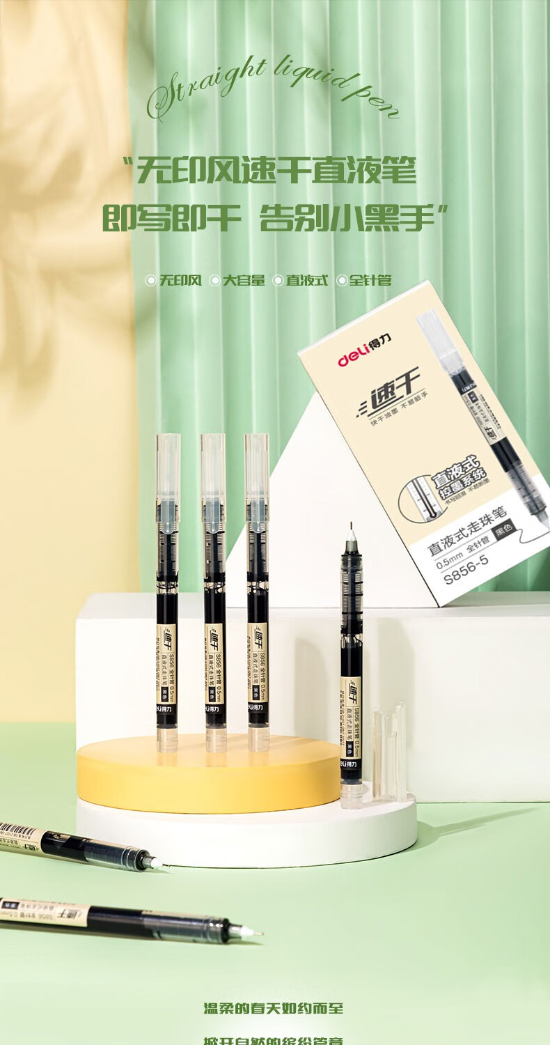 得力(deli)直液笔速干笔签字笔 尖锥头全针管子弹头中性笔 商务办公学生水笔走珠笔 书写不脏手 2支装-V96【备考中性笔】