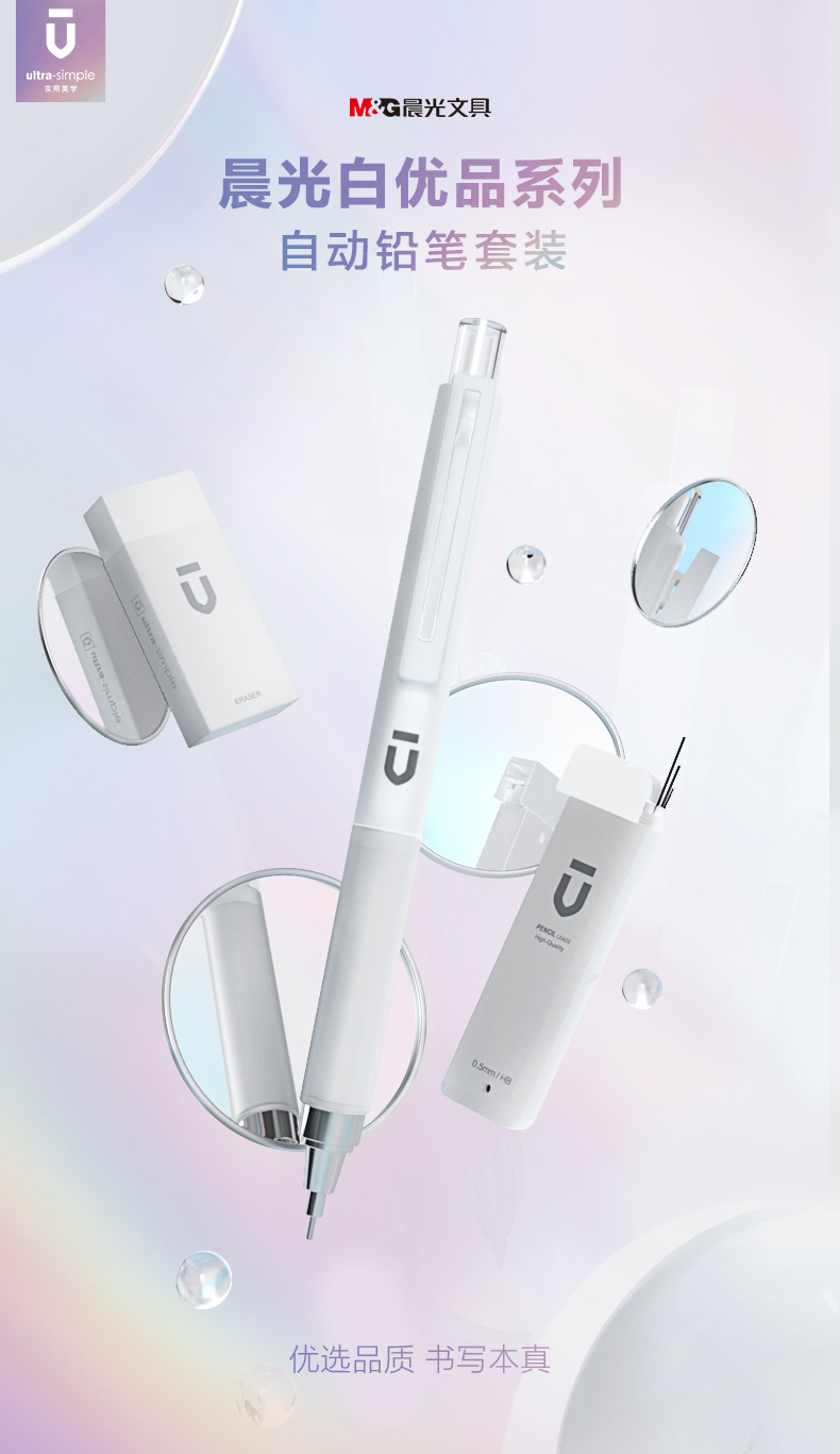 晨光(M&G)文具自动铅笔三件套0.5mm 活动铅笔优品系列(铅笔+HB铅芯+少屑橡皮)学生考试开学文具礼盒HAMP1614
