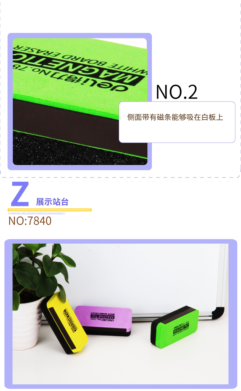 商品名称:得力(deli)7840 彩色白板擦磁性粉笔擦白板刷板擦黑板擦粉笔绿板擦 3个装