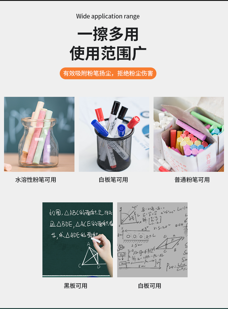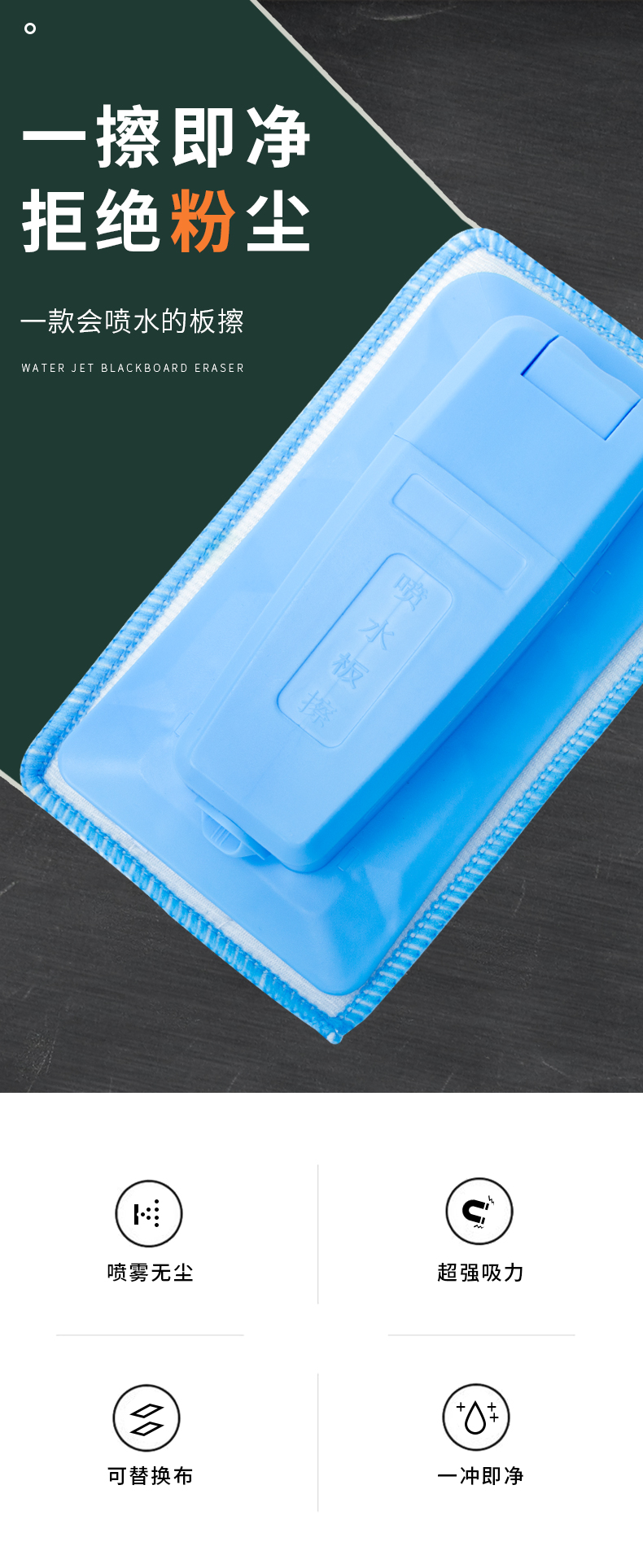 Touch Fish 喷水黑板擦防尘干湿两用磁性可吸附白板水溶性无尘粉笔擦老师专用珊瑚绒布可拆水洗 喷水黑板擦