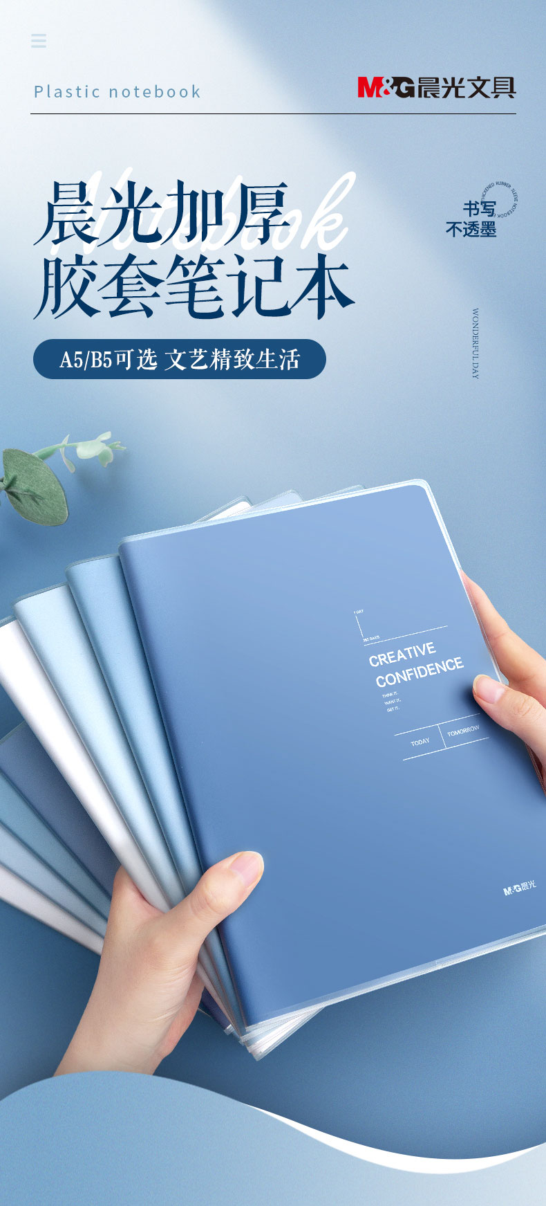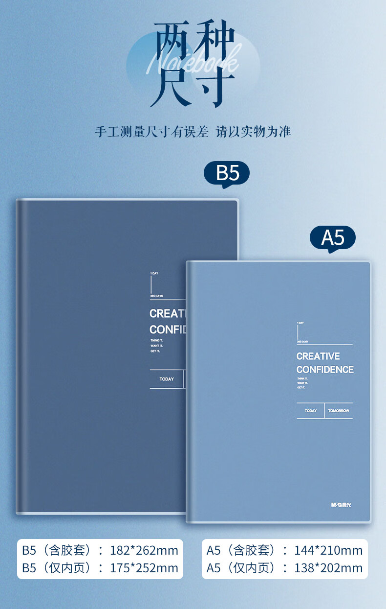 晨光(M&G)文具B5/64张胶套本 记事本笔记本子 高颜值错题本 高中学生考研日记本 淡染系列4本装