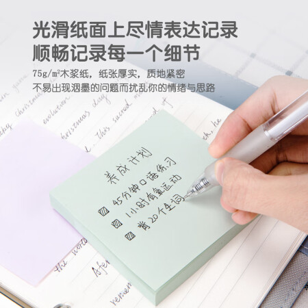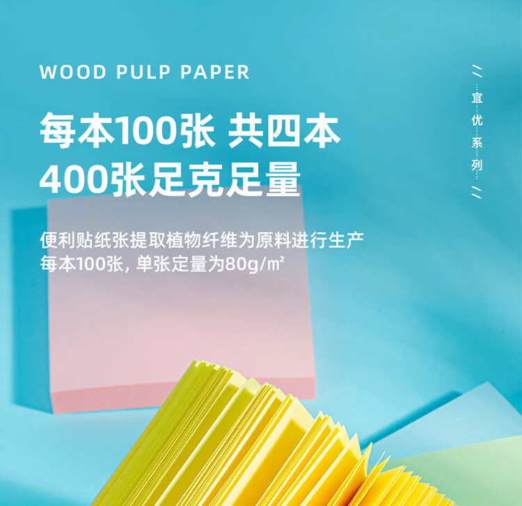 得力(deli)400张4色浅调系列淡彩简约便利贴 粘性强书写顺滑76*76mm便签本/记事贴 办公用品