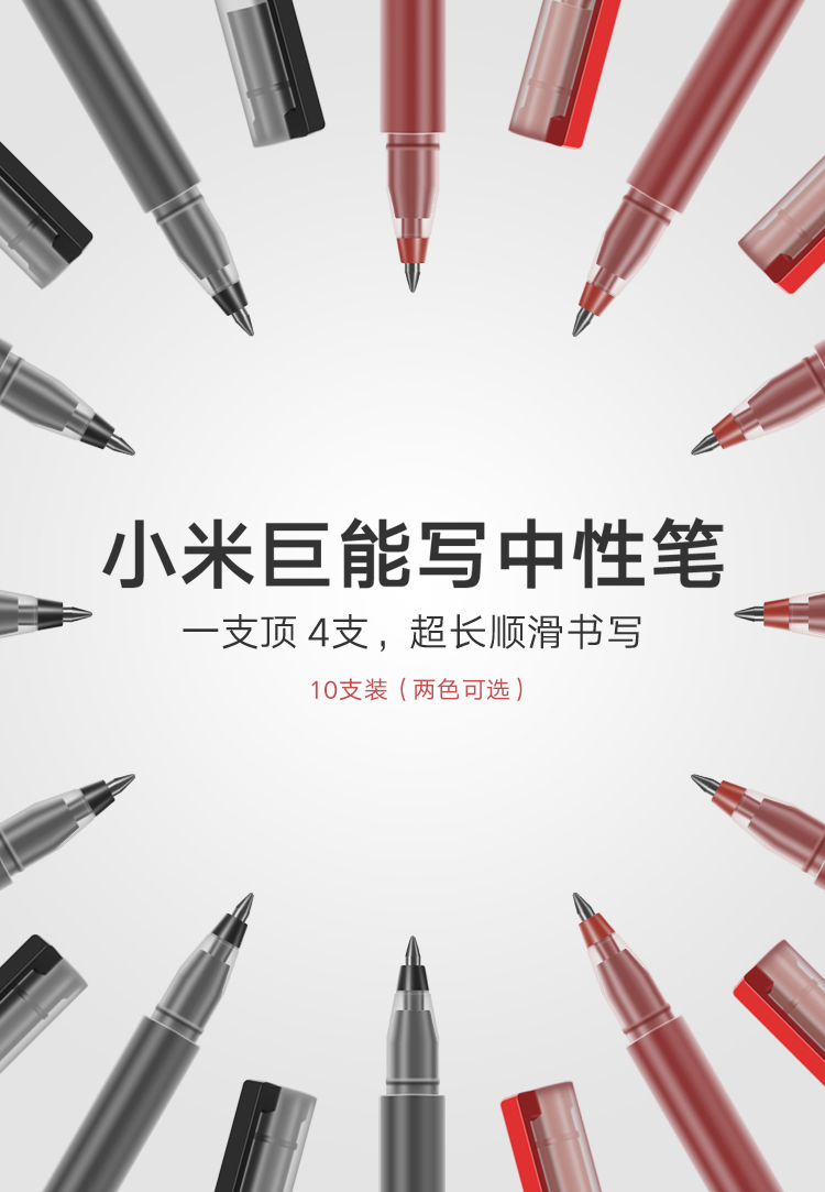 小米巨能写中性笔 10支装 黑色 0.5mm 商务办公学生中性笔会议笔