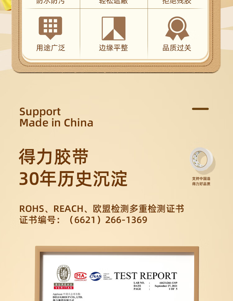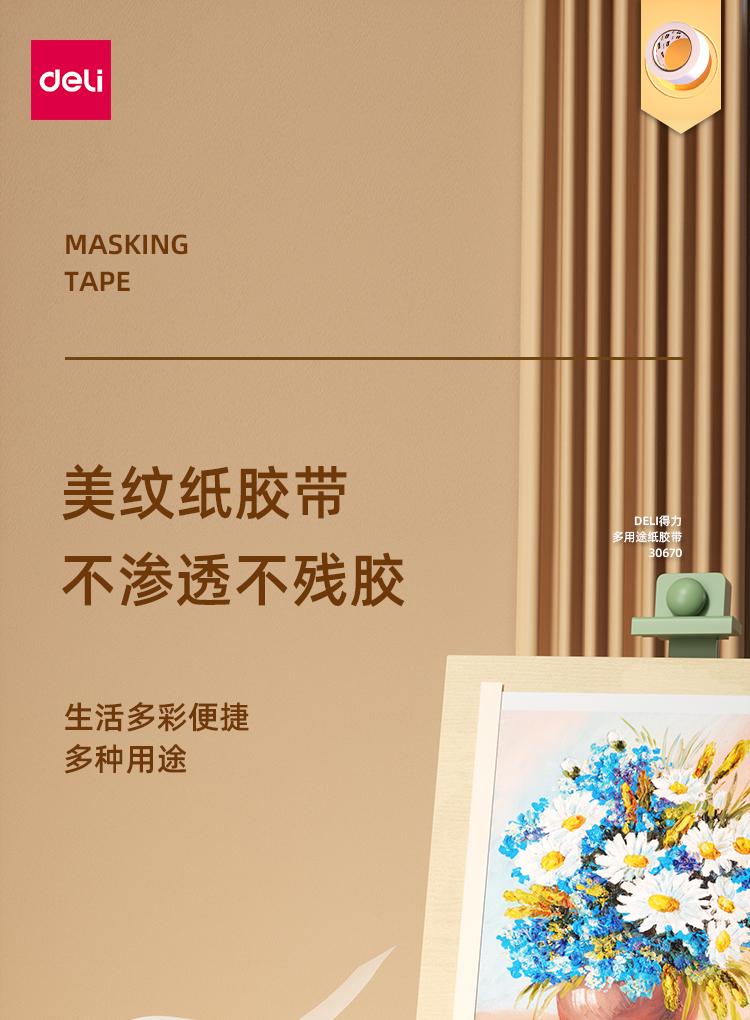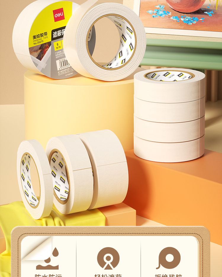 得力(deli)美纹纸胶带/装修遮蔽带/无痕纸/贴膜 24mm*20y*145um(18.3m/卷) 6卷袋装 办公用品 30670