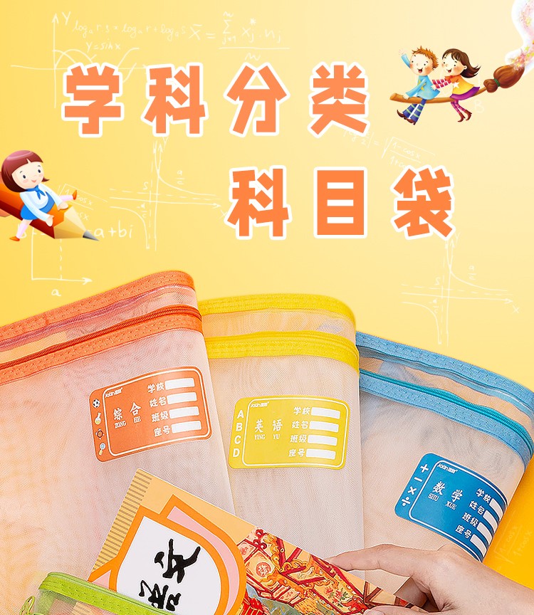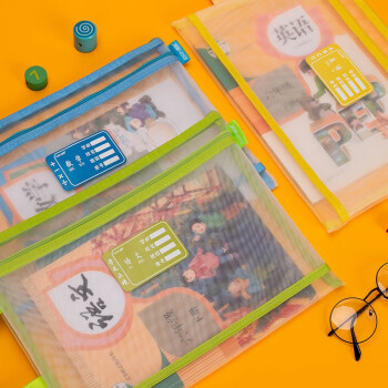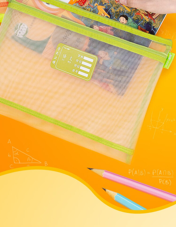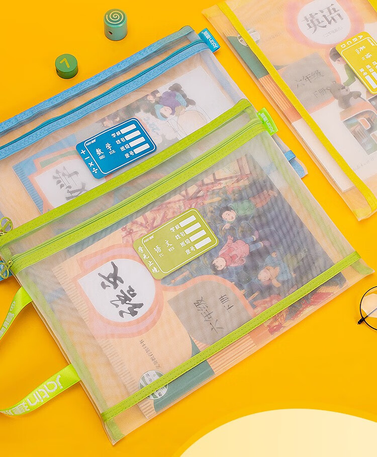 建腾a4网纱袋拉链式文件袋尼龙双层网纱学生学科科目分类试卷收纳袋 英语 4个装